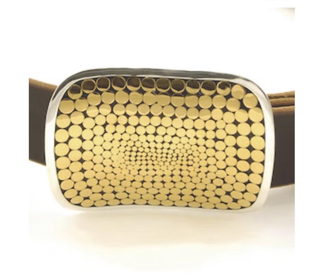 3" wide; 2.5" tall 18k gold vermeil belt buckle.