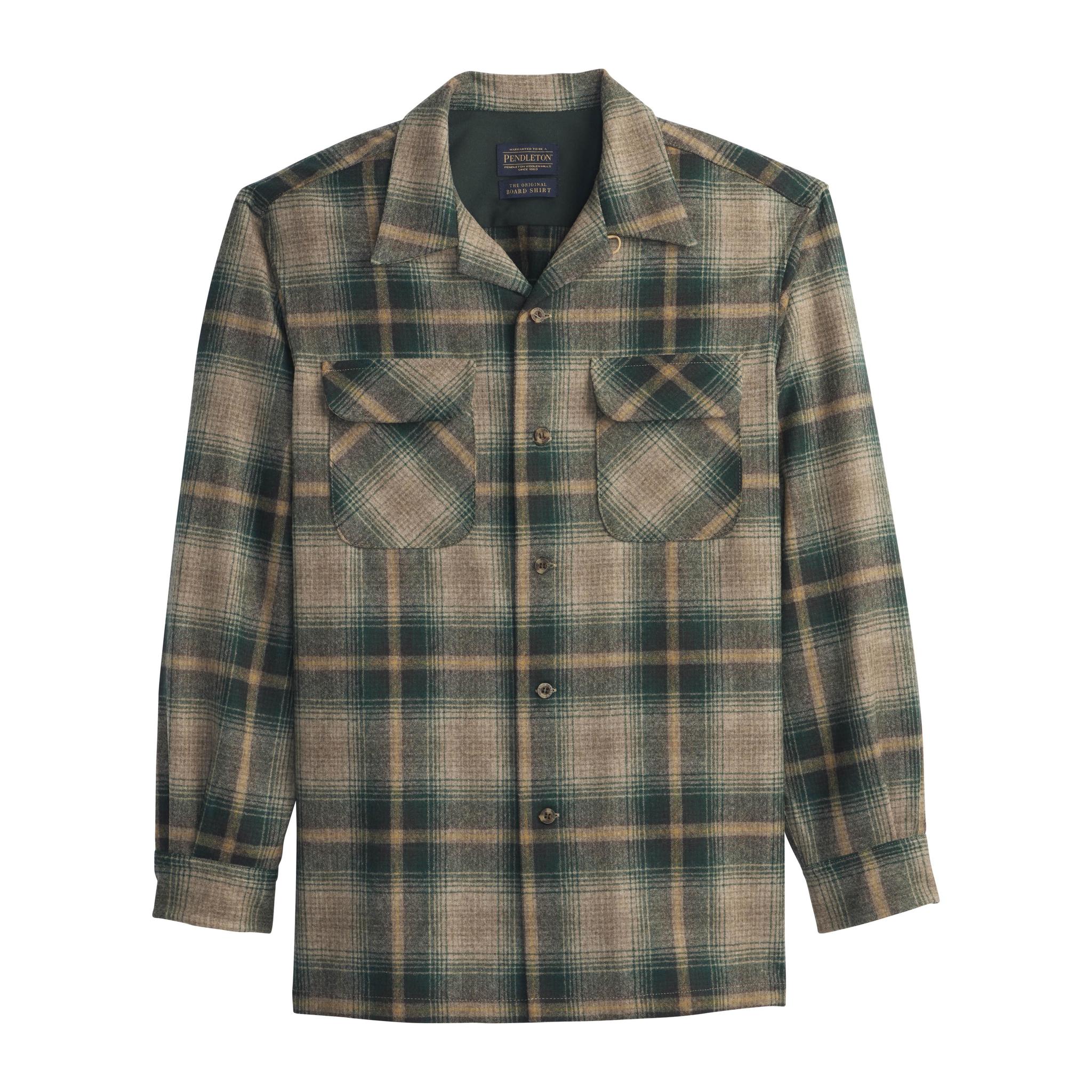 An essential among California surfers in the '60s, and still Pendleton's bestselling shirt today. Made from premium, machine-washable wool sourced from local ranchers in Umatilla County, Oregon near our Pendleton mill. Rugged, midweight fabric is water, odor and stain-resistant. Square bottom, two bias-cut pockets. Pure virgin wool. Fabric woven in the USA by Pendleton Woolen Mills. Imported of USA fabric. Machine wash. Sizes guide shown in inches. This particular plaid is from Pendleton Woolen Mills' 2005 Archives.