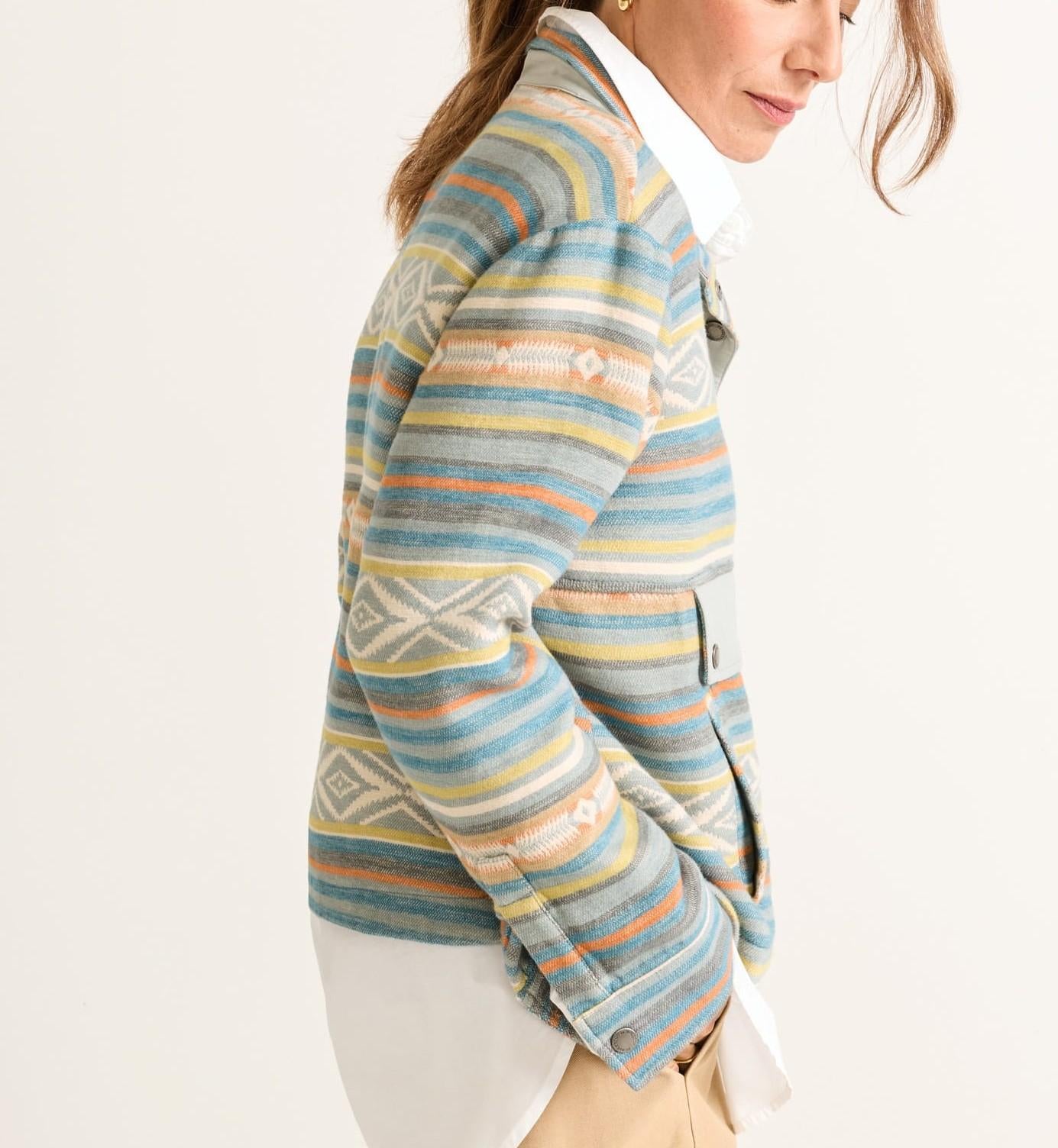 Women's Double Soft Half-Snap Pullover Teal Multi